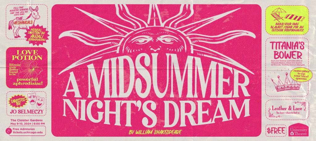 In this exciting site-specific staging of Midsummer, the classic Shakespearean shenanigans of lovers, fairies and mechanicals are placed atop the tumultuous landscape of early 2000’s small town Midwestern USA. Featuring gender-bending, drag, and devised music-making galore, this production explores the tensions between fantasy and reality, queerness and “normalcy”, and asks just how powerful dreams can be.